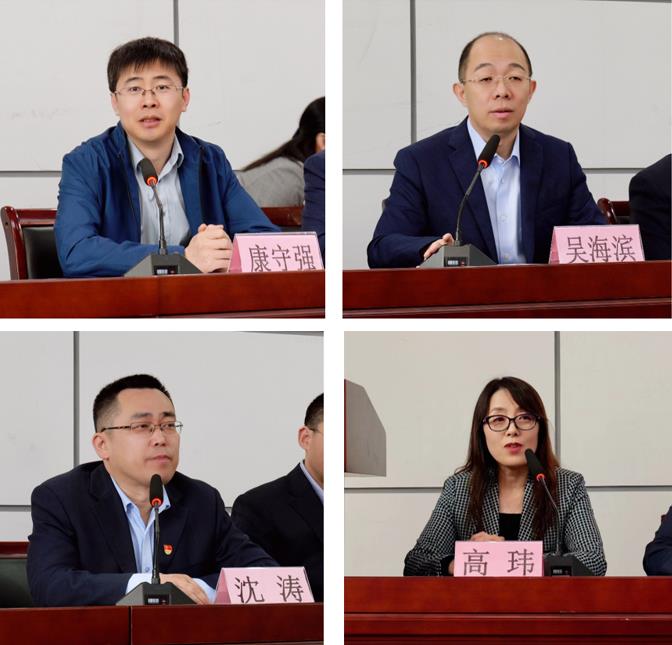 科技处处长康守强、测通学院院长吴海滨、教务处副处长沈涛、黑龙江省量子调控重点实验室主任高玮教授发言