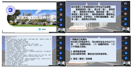 会议伊始,田欣欣老师介绍了哈尔滨理工大学俄语系MA和MTI的基本情况,分别从发展历史、师资力量、国际合作、学生培养及学生就业等方面做了全面介绍,在学生比较关心的考研及就业等方面进行了详细的讲解,结合俄语系的专业特色及社会需求对学生良好的就业前景进行了展望,鼓励同学们报考哈尔滨理工大学。田欣欣老师在交流会中讲到:“希望本次交流会可以帮助同学们解答学习中的困惑及就业中的疑惑,以期为同学们提供更好的交流平台,为来日的实践提供更多助益。”