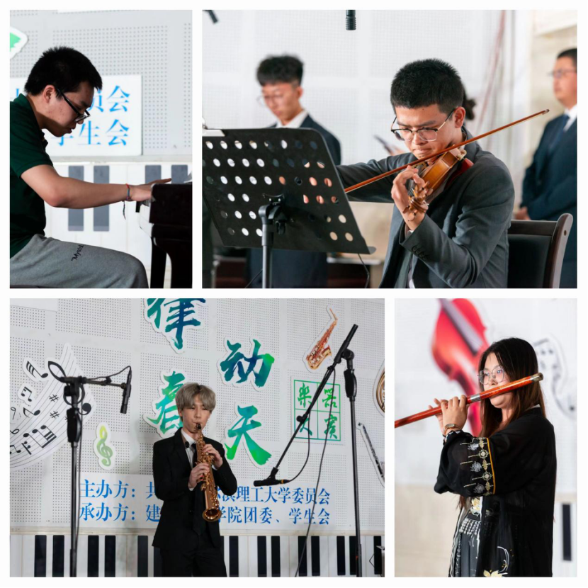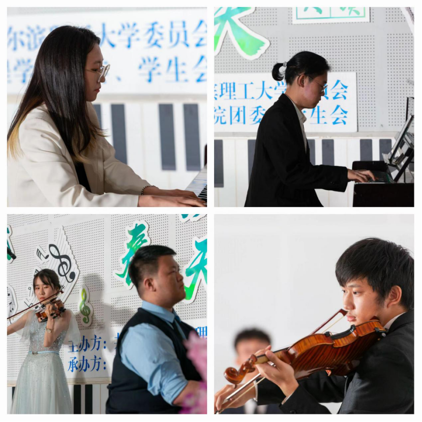 春日的鸟鸣是大自然的馈赠,动听的旋律是人们对音乐的向往。为深入学习宣传贯彻习近平新时代中国特色社会主义思想和党的二十大精神,引导青年学生厚植家国情怀、涵养进取品格,丰富大学生校园文化生活,培养学生的音乐感受能力、鉴赏能力、表现能力和创造能力,由哈尔滨理工大学团委主办,建筑工程学院团委、学生会承办的第二十八届“珩星”大学生文化艺术节之“律动春天”乐器大赛决赛于5月11日晚在西区2号楼231教室举行。本次大赛特邀黑龙江艺术职业学院副院长赵挺教授、哈尔滨师范大学钢琴系刘畅教授、哈尔滨音乐学院郭永波教授、哈尔滨理工大学团委宣传实践部负责人李晟睿老师和外国语学院辅导员王梓懿老师担任大赛评委。建筑工程学院党委副书记周晓丽,辅导员戴子博、牛嘉宸、张迪作为受邀嘉宾出席本次大赛。