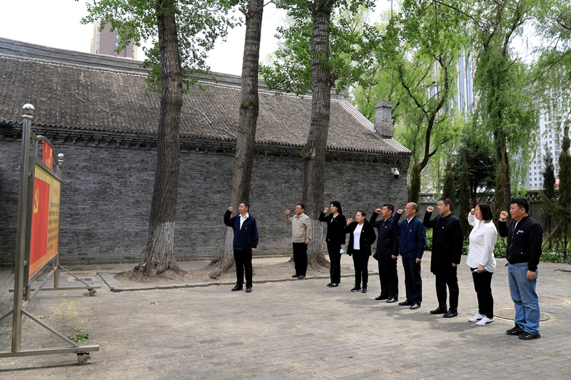 在四野指挥部旧址纪念馆,全体党员了解到第四野战军在这里先后指挥了大小战斗、战役共二十二次,其中著名的有辽沈战役、新开岭战役、三下江南、四保临江等,全体党员向革命先烈表达了崇高的敬意。面对鲜红的党旗,工作人员党支部书记原海滨同志带领大家重温了入党誓词。
