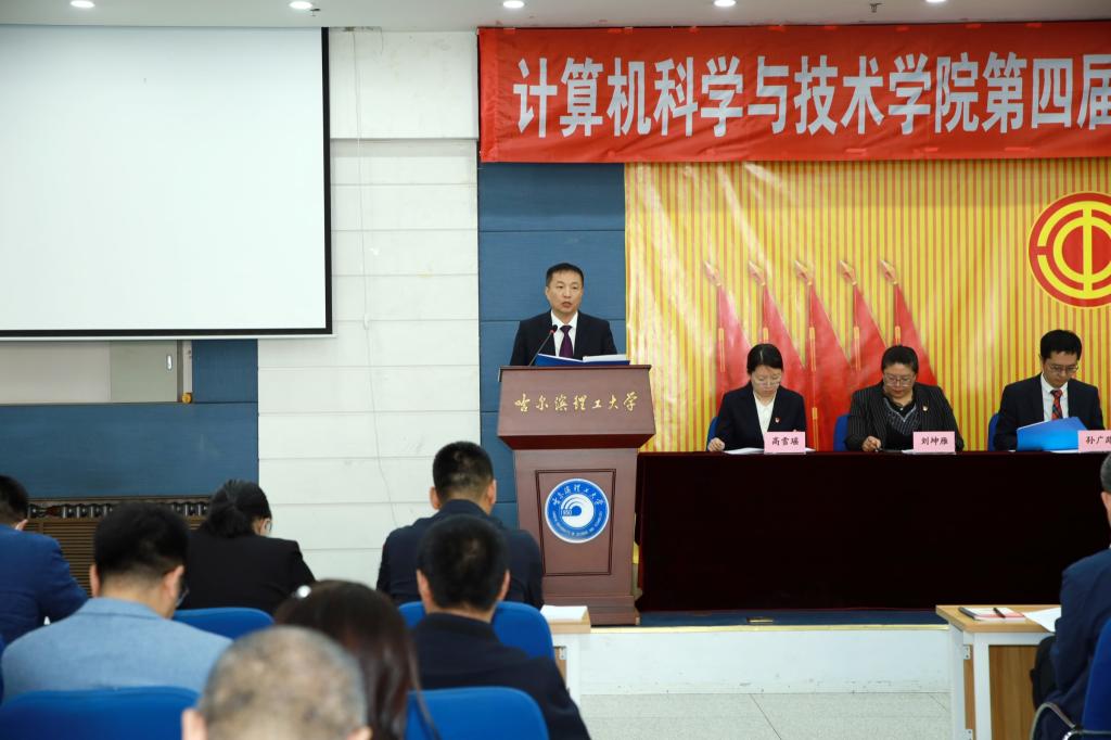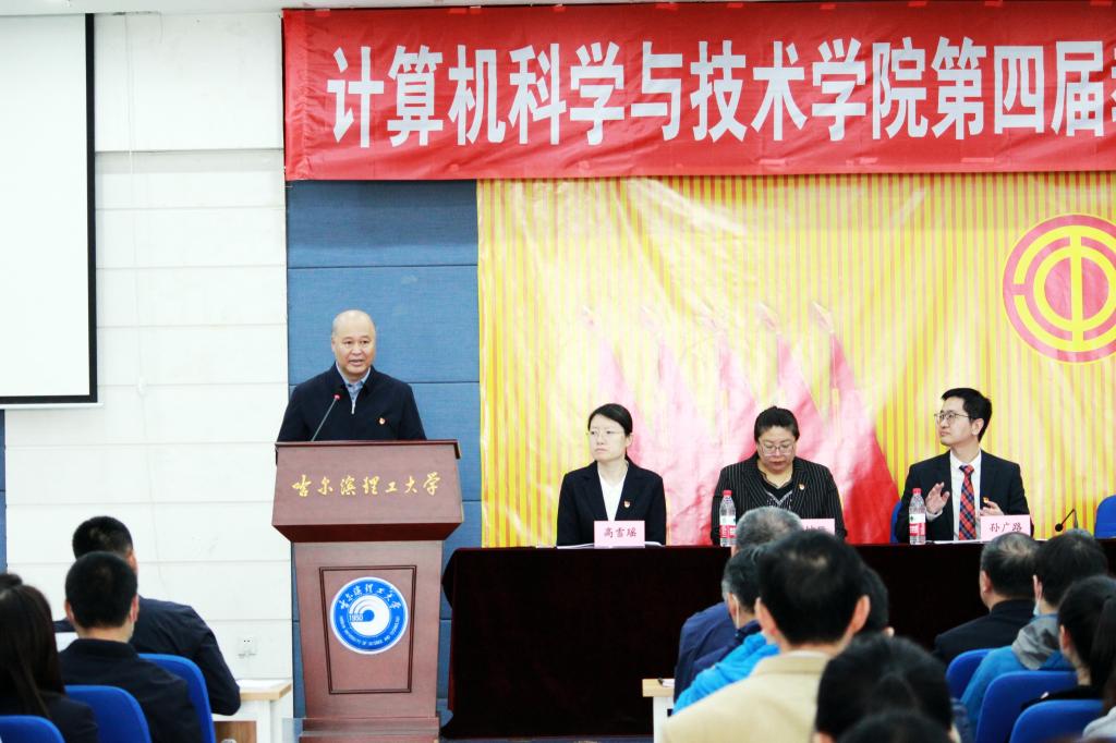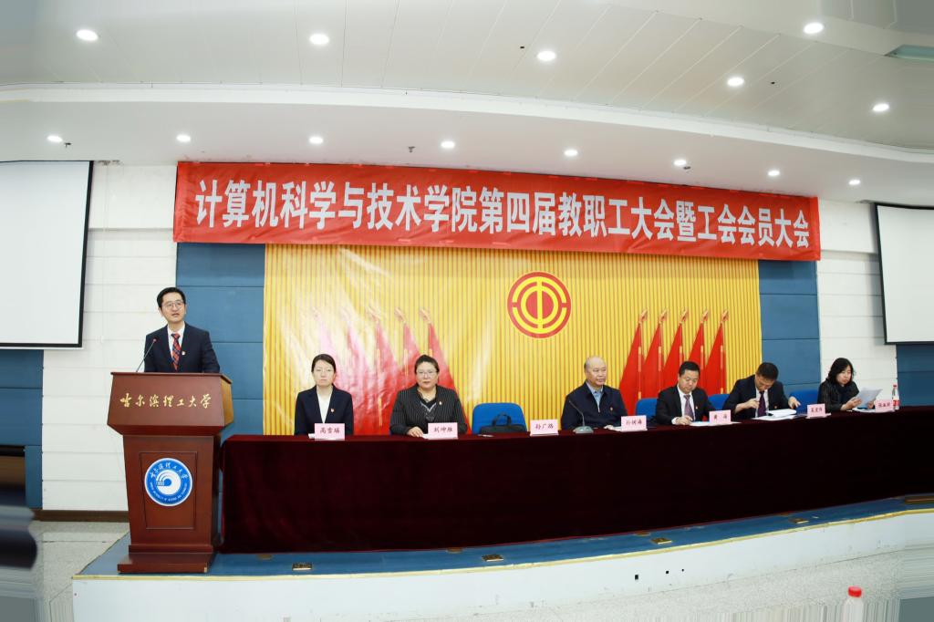 大会在庄严的国歌声中开幕。校党委常委、纪委书记孙树海代表学校向大会的召开表示热烈祝贺,向全院教职工和工会工作者致以亲切的问候和崇高的敬意,对计算机科学与技术学院近年来所取得的成绩予以肯定。孙树海指出,希望工会干部要不断提高自身政治站位,深刻领会党和国家对高等教育的要求,广泛了解我国高等教育发展的形势态势,充分认识学院在发展建设过程中存在的优势和不足,把党政所需、职工所盼、工会所能的事情办好办实。今后,学校将继续在政策等方面给予计算机科学与技术学院支持,尽我们所能搭建教职工成长进步的平台,携手共建更加充满活力和温馨的“教职工之家”,相信全院教职工一定会在即将产生的新一届工会委员会带领下,以开阔的视野、昂扬的斗志和扎实的作风不断推动计算机科学与技术学院各项工作取得新成绩,为建设理工大学更加美好的明天作出新的贡献。