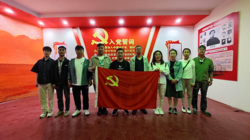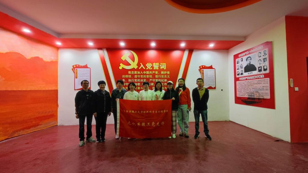 在东北抗联体验基地内材化学院党员教师开展了“重温入党誓词”的主题党日活动,全体党员在学院党委副书记杨剑锐的带领下,高举右手,面向党旗庄严宣誓。鲜红的党旗下,党员教师再一次感受入党的庄重性和严肃性,表达了开展好主题教育的坚定信念。