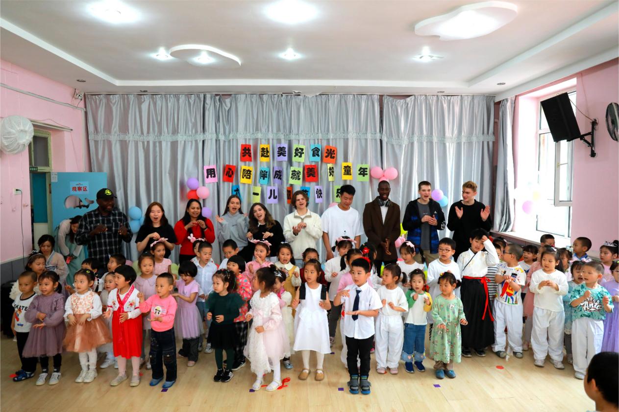 来自不同国家的留学生们不仅欣赏了孩子们充满童趣的表演,还为孩子们表演了脍炙人口的中、英文儿歌,为活动增添了异国情调。