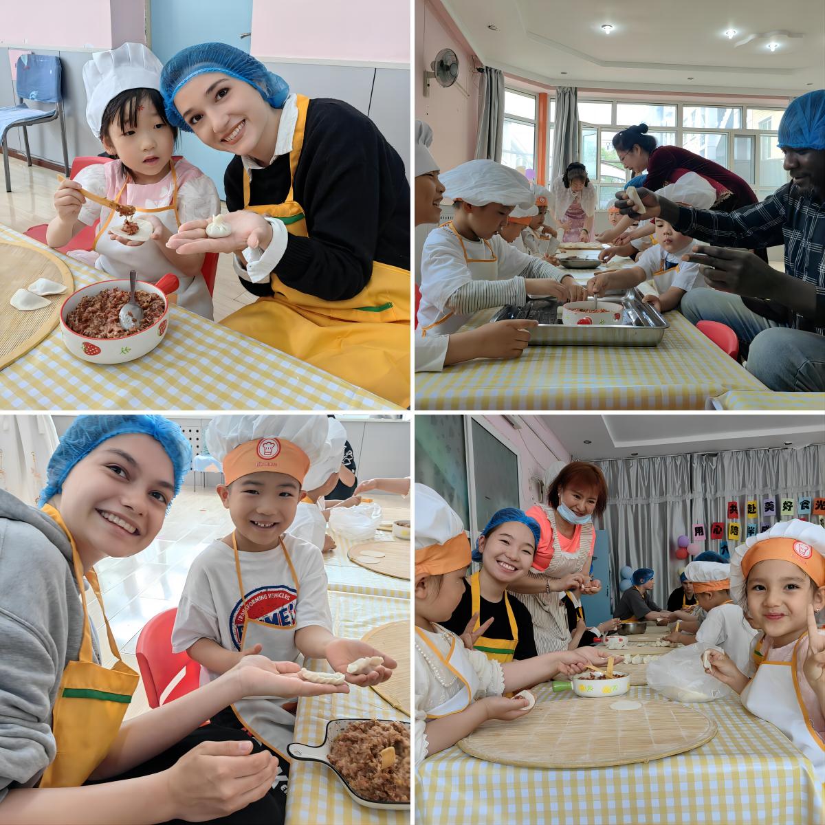 在幼儿园老师的带领下,大朋友、小朋友们一起包起了形状各异的中国饺子、俄罗斯饺子、格鲁吉亚包子……大朋友们不仅和小朋友们制作了中国传统美食,还一起品尝了各式美食,看着香味扑鼻的美味佳肴,留学生们个个垂涎欲滴,纷纷赞叹“理工娃”真幸福!