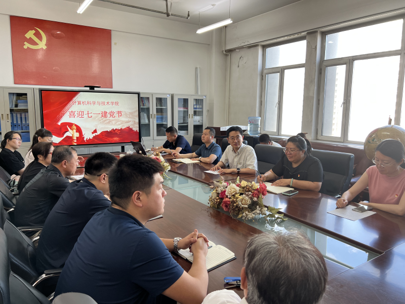 为庆祝中国共产党成立102周年,教育引导全院师生党员深入学习贯彻习近平新时代中国特色社会主义思想,落实“学思想、强党性、重实践、建新功”主题教育总要求,进一步增强党组织的凝聚力和战斗力,2023年6月30日,计算机学院党委开展“迎七一、学先进、强党性、建新功”主题党日活动,学院党政领导班子、全体党支部书记及部分党员代表参加活动。活动由学院党委书记孙广路同志主持,学院院长黄海同志参加活动并作讲话。