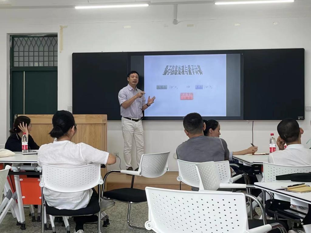 量子信息科技属于战略性、基础性的前沿科技创新领域,近年来随着量子领域的迅速发展,量子信息与量子计算技术已经成为了未来科技发展的重点和热门研究方向。理学院高度重视量子信息相关领域的研究动态,为拓宽学术视野,加强学术交流,7月23日上午,应理学院工科数学教学中心罗来珍教授邀请,首都师范大学费少明教授、浙江科技学院教授陶元红教授、杭州电子科技大学张林教授等来我校交流。理学院副院长张辉教授、理学院工科数学教学中心、应用物理系部分师生以及来自哈尔滨工业大学、哈尔滨工程大学、黑龙江大学的教师及研究生参加了本次活动,会议由孟桂芝教授主持。