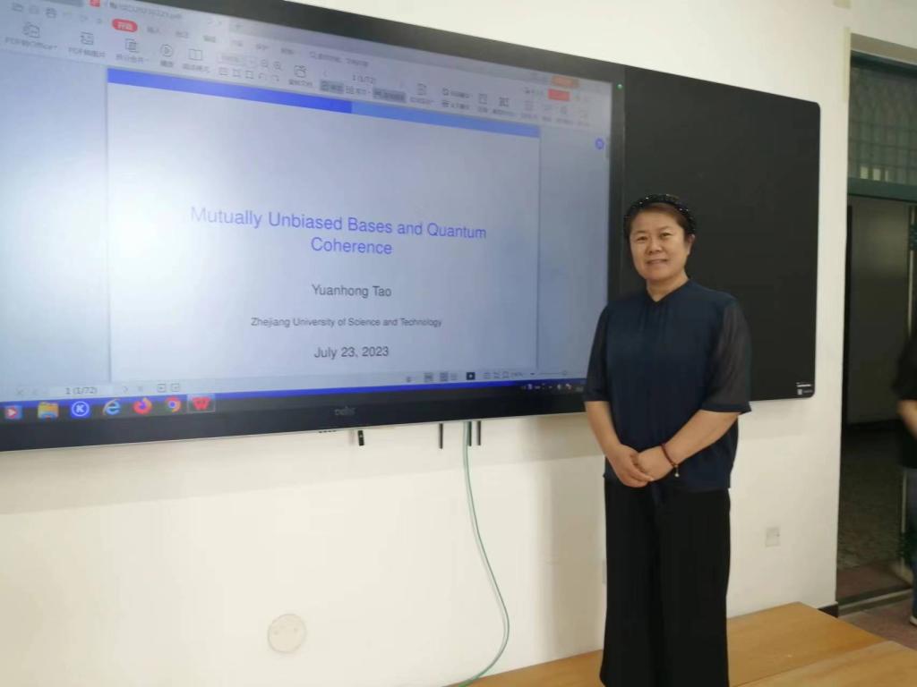 陶元红教授做了“无偏基与量子相干”的报告,介绍了无偏基的发展历史、两体和多体量子系统中纠缠基的构造以及无偏性问题研究(包括结构与个数),探讨如何利用低维空间中的无偏基结构去构造高维空间相应的无偏基问题,并介绍了在无偏基下的量子相干理论中的一些研究工作。
