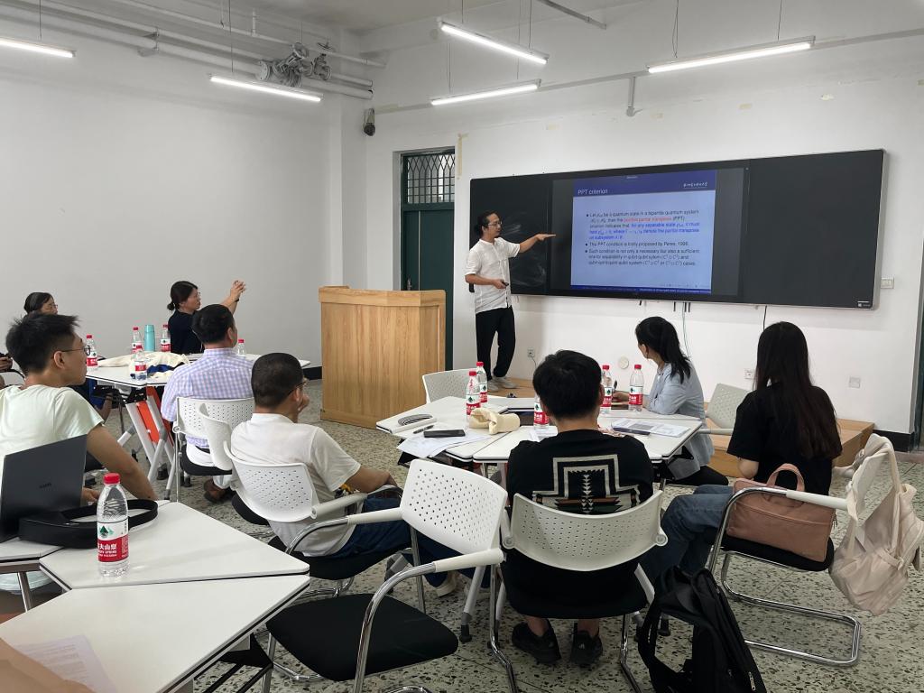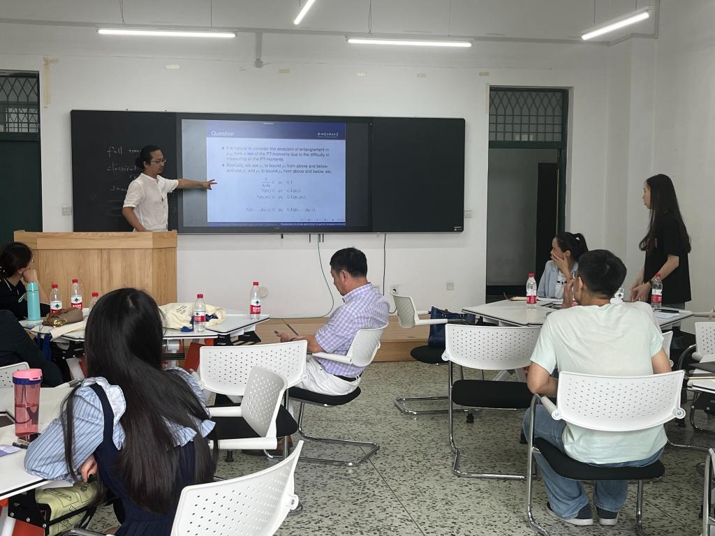 张林教授做了“Visualization of all two-qubit states via partial-transpose moments”的报告,主要介绍了正部分转置判据的物理可操作形式,给出了相关的概念、定理和结论,并列举了二量子比特态可分和纠缠的可视化图形和近期所取得一些成果。