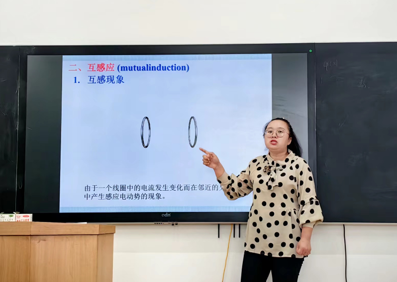 宋瑞霞老师讲解了大学物理中的自感应和互感应,她生动地由中学物理的电路实验出发引入线圈的自感现象,导致不同位置处小灯泡的变亮速度差异。系统的从自感现象、自感电动势和自感系数方面讲解了自感应,又从互感现象、互感电动势和互感系数方面讲解了互感应。同时引入相关实例和习题,吸引学生对本节课内容的兴趣,了解自感现象与互感现象的利弊,同时深刻理解自感应与互感应在生活实际中的应用。