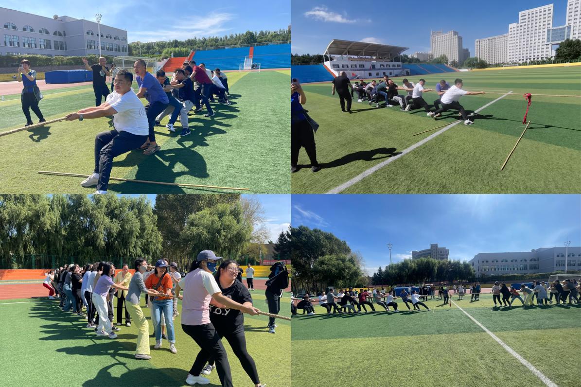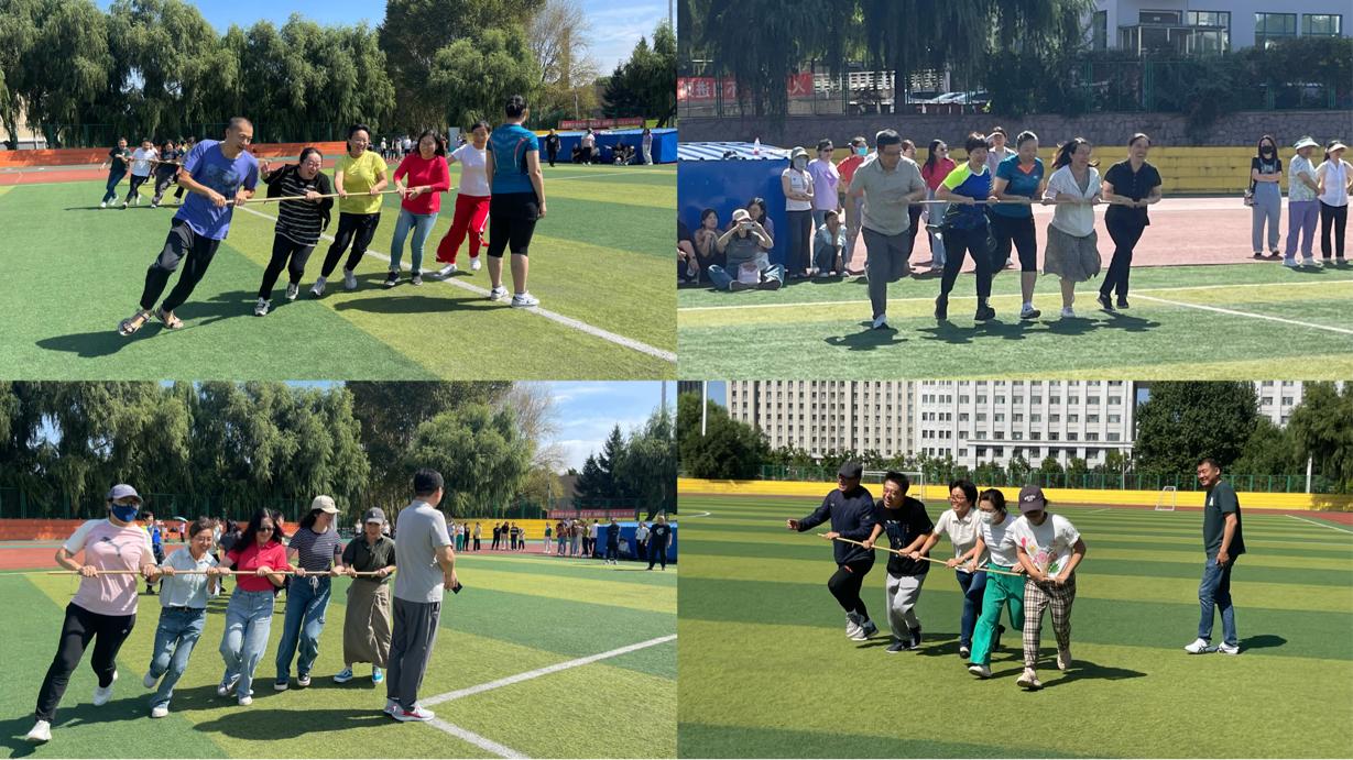 趣味运动会中设置竹竿接力跑、拔河等集趣味性、娱乐性、协作性和竞争性于一体的系列活动。活动中老师们顽强拼搏、激烈角逐,呐喊助威声不绝于耳,整个活动在紧张又热烈的气氛中进行。