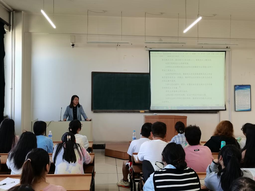 杨蕊对《哈尔滨理工大学研究生申请学位学术成果的规定(试行)》的出台背景及内容进行解读,要求学生对标文件要求,提前规划,积极推进,力争早日完成毕业要求的学术成果。杨秋香、吴非分别对翻译专业学位研究生及外国语言文学学术学位研究生培养方案及培养过程中的关键环节进行介绍,使学生对未来2-3年的学习生活有了深入的了解与清晰的规划。