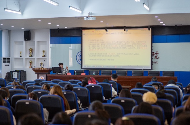 近年来,考研、考公热潮不断升温,越来越多的大学生选择考取公务员或考研提升自己的学历和竞争力。为了帮助广大考生更好地备考,提高考试成绩,经济与管理学院邀请到了七台河市工信局副局长董隽哲以及高校就业指导师、考研学习规划师高安彤两位嘉宾莅临授课,帮助广大学子更好地了解七台河市人才政策以及帮助解答学生在备考公务员、研究生过程中所遇到的困惑和难题,本次讲座由经济与管理学院团委主办,于9月21日15:20在哈尔滨理工大学南区1号楼740举办,126名20与21级学生参加。