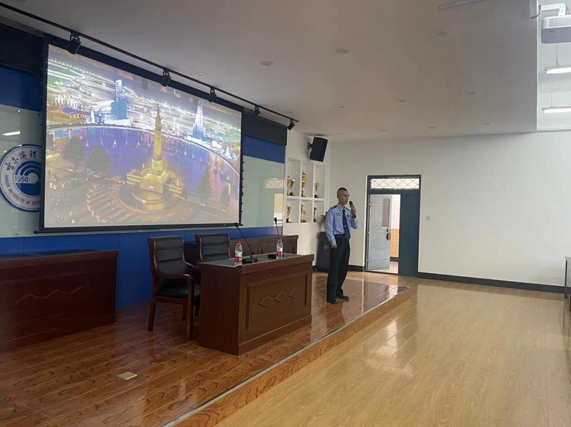 普法教育环节,市出入境管理局外管科金云龙警官进行了涉外法制宣讲,对非法就业、非法居留等问题进行了说明,希望留学生们在华期间能遵纪守法,加强自我管理。