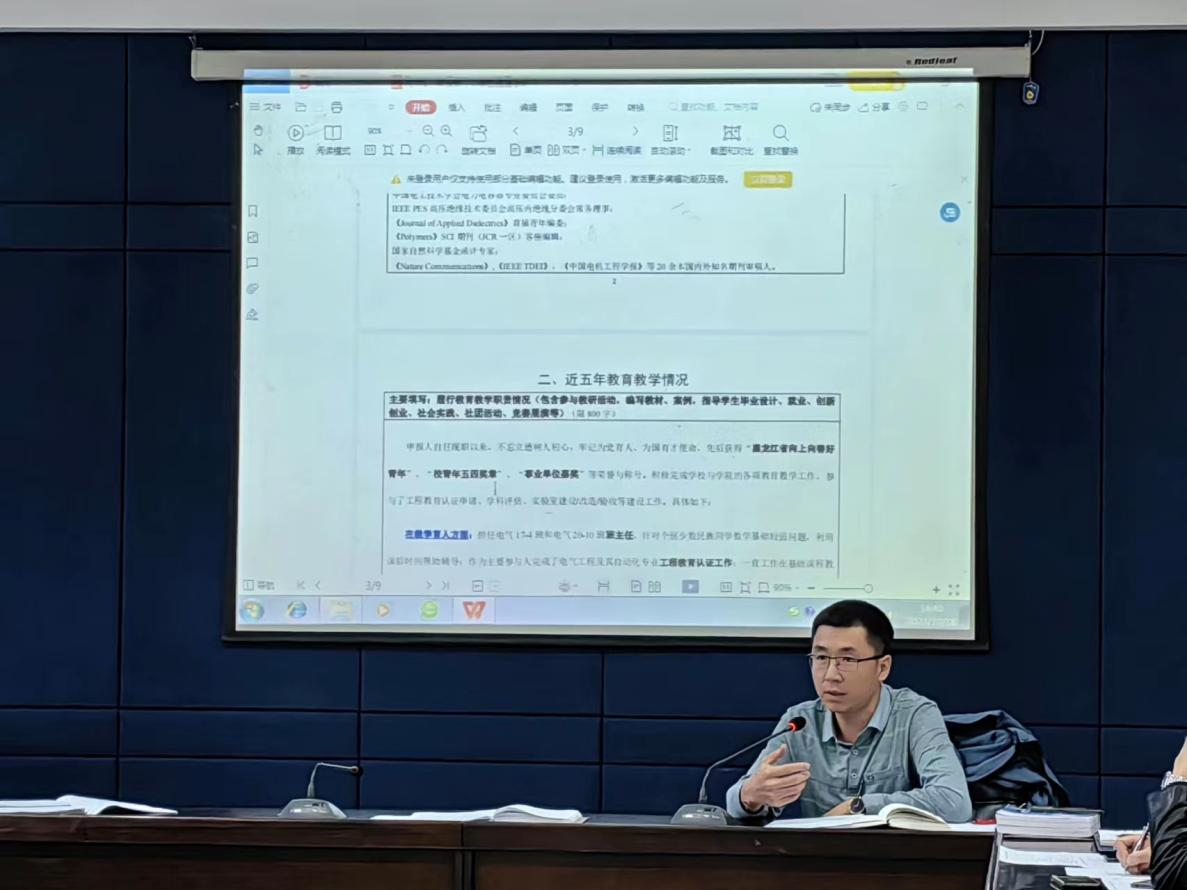 首先,人事处师资科副科长王宏健介绍了2023年度专业技术职务评审工作流程,并结合典型案例,逐项说明专业技术职务评审聘任申报表填写要求。人事处副处长付立军进一步明确了近五年业绩成果认定标准及填报要求。同时结合以往评审过程中容易出现的问题,强调了避免成果重复使用、项目有效期等关键点着重说明了代表性成果填写的注意事项。互动环节,针对评职工作细节和具体问题,参会人员充分交流,人事处予以解答。