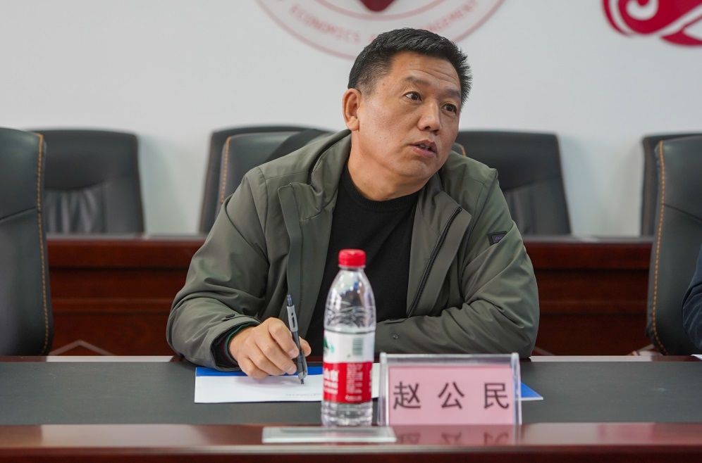 武建龙院长首先代表学院对赵公民院长一行的到访表示热烈欢迎,并从学科专业建设、师资队伍及人才培养几个方面介绍了学院的建设成效和经验。他指出在师资队伍建设方面,学院组建了专业团队深入目标高校博士生群体宣讲对接,注重青年教师培养成长,对标学科建设高水平成果产出,打造学院高水平培育项目,优化绩效工资分配方案,双管齐下激发教师活力;在人才培养方面,推进“博士牵引,以本为本”的本硕博一体化人才培养体系,全面实施全日制博士招生,打通职称评聘、导师遴选、绩效分配、业绩考核、人才培养、奖助评定的高水平成果认定标准,突出博士研究生“标志性”成果,硕士研究生“多样性”成果的毕业要求,全面实现高质量人才培养目标。
