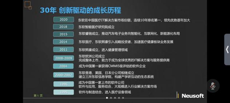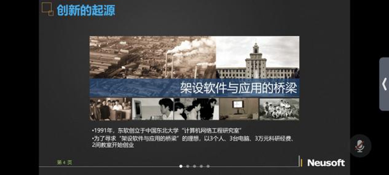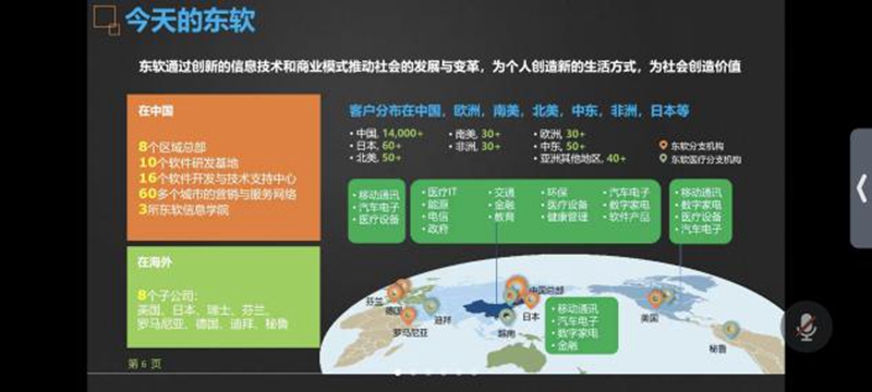 宣讲会上,东软人力资源部部长高昕,通过PPT展示、线上交流等方式对公司进行详细介绍,全面细致地向毕业生讲解公司的前沿技术和设备、企业文化以及未来的发展趋势,并重点向同学们讲述了公司的发展历程、个人发展机遇、晋升制度、公司的发展前景以及福利待遇等情况。