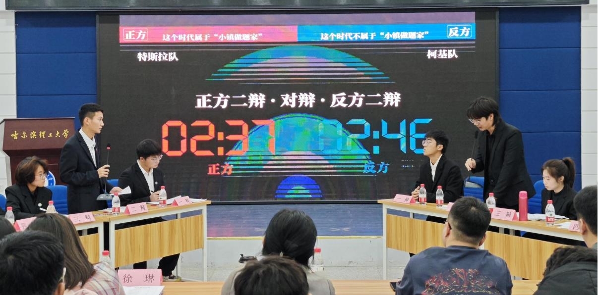 扬思辨之风,展青春风采,唇枪舌战,英雄狭路相逢。历时二十天,经过激烈角逐,最终有两支队伍一路过关斩将,挺进决赛。本次决赛围绕“这个时代属不属于‘小镇做题家’”辩题进行。参赛的两支队伍分别是由能源和机电组成的正方代表队,由机械和机电组成的反方代表队。比赛过程激烈而引人注目,双方代表队展开激烈角逐,据理力争、针锋相对、互不相让,辩手们唇枪舌剑、妙语连珠,赢得了现场观众们的阵阵掌声。特别是在自由辩论环节,辩手们巧妙发问、环环相扣、跌宕起伏,在激烈的思想碰撞中,把全场气氛一次次推向高潮,充分表现出各自团队的才智和辩论实力。最终,正方代表队以其扎实的观点和严密的论证获得了总决赛的胜利,正方一辩王宁峰被评选为最佳辩手。