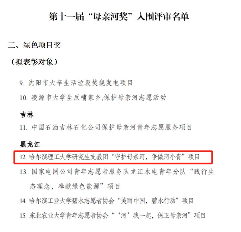 为深入学习宣传贯彻党的二十大精神,积极引导广大青少年和社会各界以习近平生态文明思想为根本遵循,共青团中央等八部委联合开展了第十一届“母亲河奖”评选表彰活动,通过发掘选树表彰一批面向青少年开展生态文明实践探索、宣传教育、理论研究、科技创新、资源供给等方面作出突出贡献的个人、集体、组织和项目,为建设美丽中国贡献力量。我校“小火焰”研究生支教团“守护母亲河,争做河小青”项目荣获第十一届“母亲河奖”——绿色项目奖提名,也是我校首次获得该奖项提名。