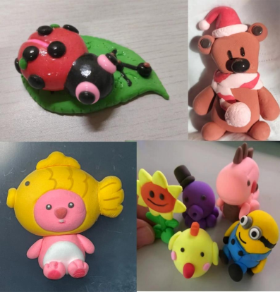 同学们创作的作品都具有独特的造型和新颖的创意。主题也很丰富,有的喜欢动漫、有的喜欢捏小动物、有的喜欢做日常用品等等。在颜色选择上也体现出很大的不同,有的喜欢颜色丰富些、有的喜欢颜色简单甚至单色的创作。在表现形式上,有的喜欢做场景,有的喜欢单体造型,造型多样且丰富。充分发挥自己的个性,粗人粗做,体现"朴实无华,大大咧咧"的豪放风格;细人细做,精雕细刻,光滑华丽,体现“形准面光,精巧玲珑”的风格。不同性格,所制成的作品的风格也不同,都充分体现了学生自己的个性,也体现了粘土的表现力。