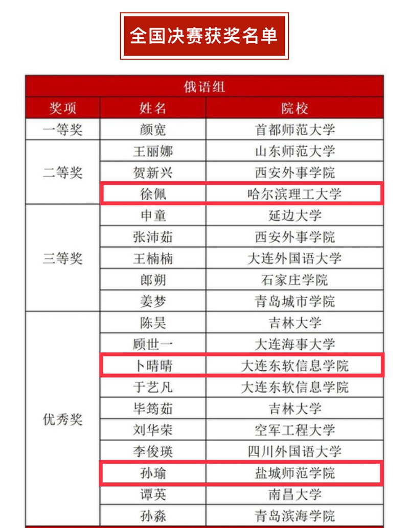 俄语组总决赛获奖名单