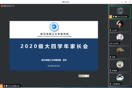 会上,各年级辅导员对家长们表示节日问候,感谢各位家长一直以来对于学院学生工作的理解与支持。并就学校学院发展概况和所带学生整体情况等方面做出介绍,研究生辅导员左欣鑫从学生科研能力提升、职业规划以及高质量就业等方面进行细致分析,引导各位家长详细了解以及充分重视研究生的成长与发展;2020级本科生辅导员范宇强调家长在毕业生就业工作中的关键作用,希望各位家长重视就业工作,鼓励、调动、督促学生积极参与各类就业招聘会,树立多渠道、多视角就业意识,同时对本科生毕业相关安排做出详细说明;2021级本科生辅导员刘桂娟从职业就业规划、考研时间轴、专业课学习以及培养学生的科研竞赛意识等方面与家长深入交流,使家长们清晰认识到大三学年这一关键节点的重要性;2022级、2023级本科生辅导员孙国宇将学生整体思想动态、心理健康情况、职业生涯规划、学业预警情况以及大一大二学生的状态转变等方面内容为家长们详细解读,希望家长们多重视、多关心学生成长,引导学生重视个人发展。