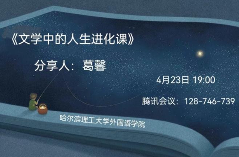 万物复苏,生机勃发,在4月23日第二十九个“世界读书日”到来之际,为进一步激发全校师生的读书热情,鼓励师生多读书、读好书,营造浓厚的读书氛围,丰富校园文化生活,外国语学院举办了一场《文学中的人生进化课》线上阅读分享会。