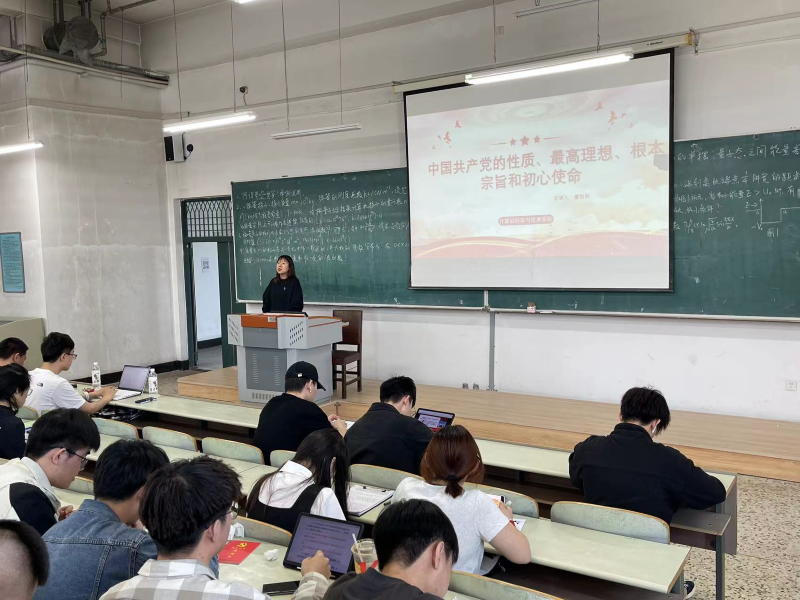 计算机学院党校辅导员董怡彤为同学们开展了以“中国共产党的性质、最高理想、根本宗旨和初心使命”为主题的党课,董老师强调青年是社会中的新生力量,要明确党不可撼动的地位,要牢记初心,自觉做党的坚定信仰者和忠实实践者,在全面建设社会主义现代化国家过程中奉献青春力量。