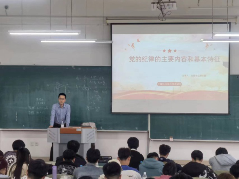 计算机学院党委书记孙广路为同学们讲授“党的纪律主要内容和基本特征”和“大珩精神”为主题的党课。孙书记在“党的纪律主要内容和基本特征”讲授了五部分内容包括:2024年党纪学习教育、“两个确立”“两个维护”、全面加强党的纪律建设、用铁的纪律管全党治全党、从严管党治党,实现与时俱进。通过以上五方面的内容阐述,告诉学员们要抓住学习重点,在学习贯彻《中国共产党纪律处分条例》上下功夫见成效,深刻认识开展党纪学习教育的重要性和目标要求切实做到学懂弄通、熟练掌握。孙书记在“大珩精神”为主题的党课中号召学生们向老校长王大珩学习,要充分的把“大珩精神”传承并发扬下去,肩负起祖国发展的重任,谱写更美好的时代华章。