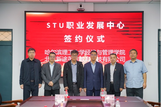 为使学生尽早规划自己未来的职业生涯,丰富自己的实践经历,提高个人的就业技能,近日,经济与管理学院举行了与北京新途英才教育科技有限公司共建“STU职业发展中心”签约仪式。出席签约仪式的有北京新图英才教育科技有限公司副总裁李波、校企合作总监刘之光,经济与管理学院院长武建龙、副院长姚锋敏、学生工作办公室主任张智洪,学院党委副书记李国辉主持了签约仪式。