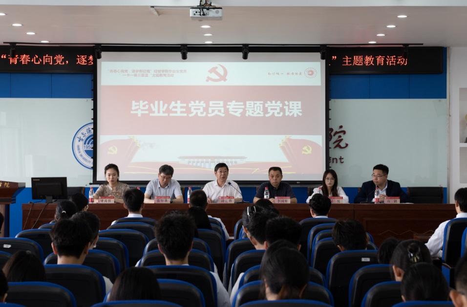 为切实加强毕业生党员党性教育,引导毕业生党员坚定理想信念,发挥先锋模范作用,6月14日9时,经济与管理学院于南区1号楼740会议报告厅开展“青春心向党,逐梦新征程”毕业生党员“一卡一课三重温”主题教育活动。学院党委书记周长群、党委副书记李国辉、毕业班辅导员张智洪、吴悦、梁禹淇及2024届全体毕业生党员参加本次活动。会议由学院党务辅导员、本科生辅导员高铭主持。