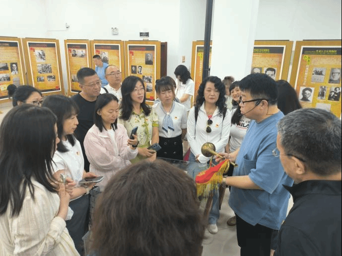 党员同志们在音乐博物馆聆听顾伟泉馆长讲解乐器的红色故事