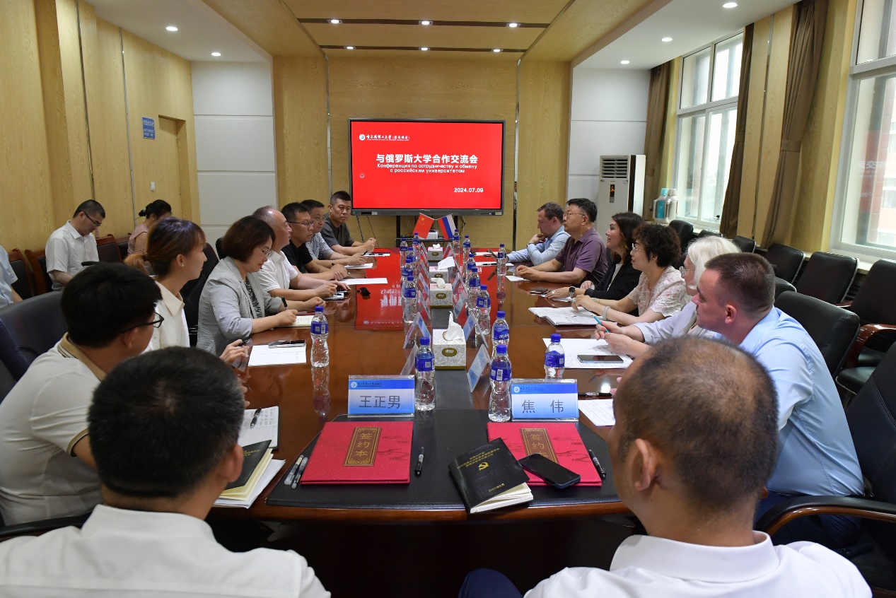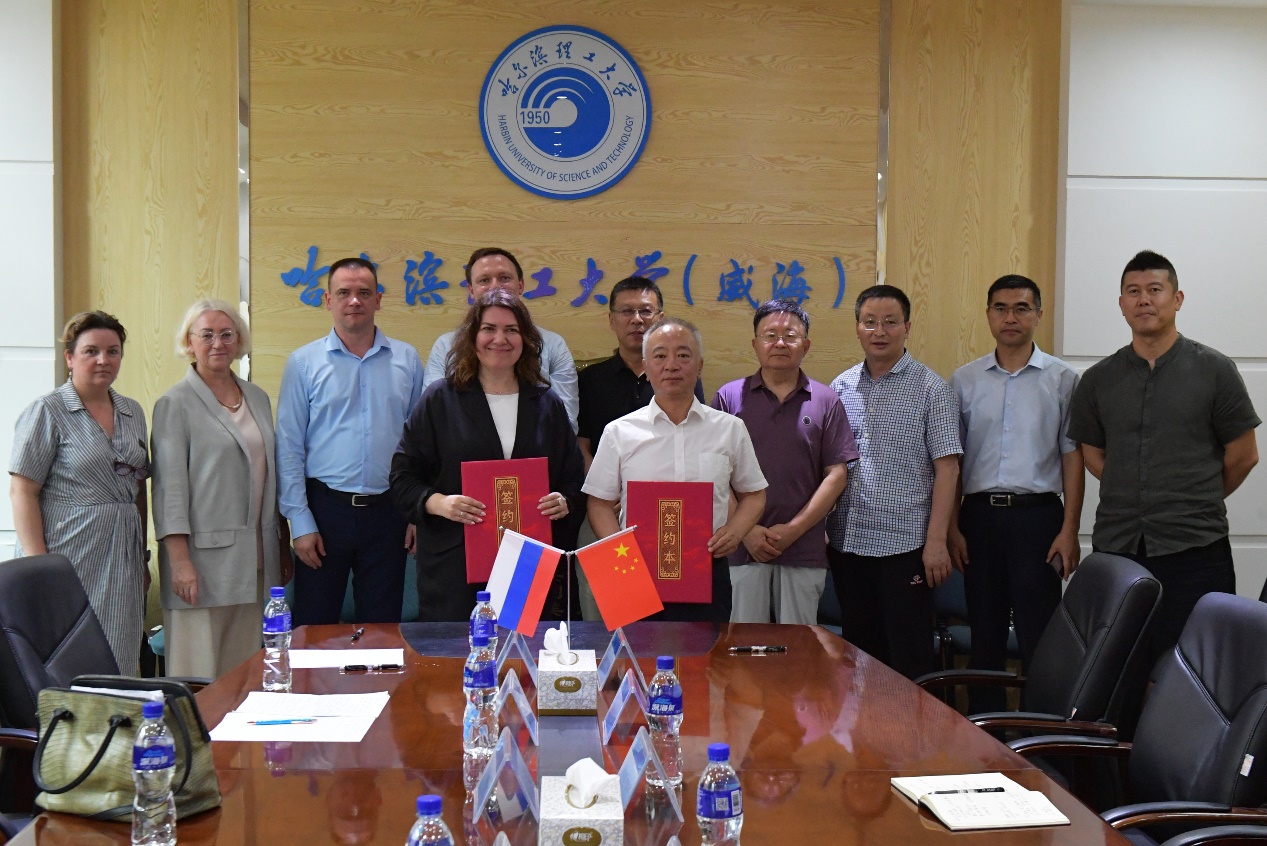 会谈最后由院长段宏伟和库尔干国立大学校长Nadezhda Dubiv共同签署了哈尔滨理工大学荣成学院与库尔干国立大学科研合作意向书。