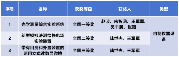 “光学测量综合实验系统”是可开设一系列前沿科研内容转化的特色实验项目。该项目已经支撑本科生参加多个学科竞赛,先后获得“挑战杯”黑科技国家一等奖、“全国大学生物理实验竞赛”国家一等奖等一系列代表性成果。
