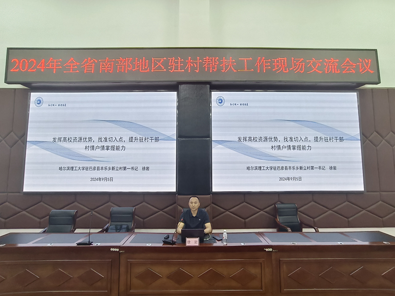 9月5-7日,由省委组织部驻村办主办、哈尔滨市驻村办承办、巴彦县驻村办协办的2024年黑龙江省南部地区驻村帮扶工作现场交流会议在巴彦县顺利召开。我校驻新立村第一书记徐岩受邀出席会议,并作了题为《发挥高校资源优势,找准切入点,提升驻村干部村情户情掌握能力》的工作经验分享。他从村情户情基本情况、驻村帮扶工作清单、村情户情掌握能力有效途径等三个方面进行了深入细致地阐述,为与会同志介绍了我校驻村工作队在巴彦县新立村的驻村帮扶经验。