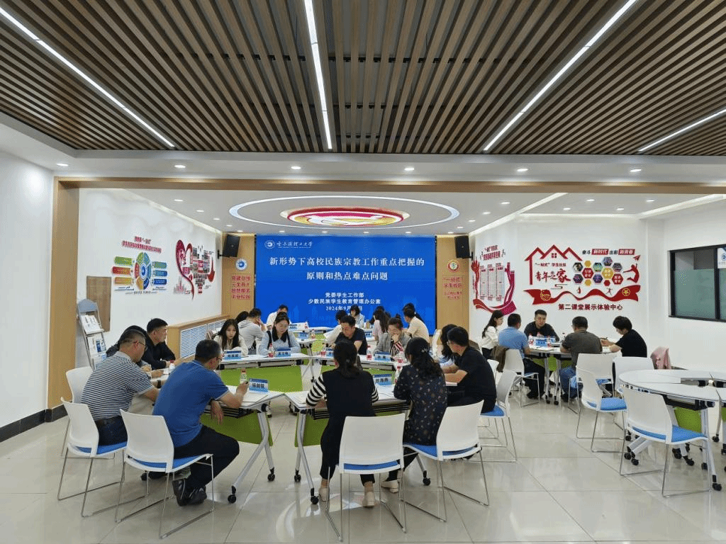 为深入学习贯彻党的二十届三中全会精神和习近平总书记关于做好新时代党的统一战线工作的重要思想,全面贯彻落实全国教育大会精神、中央民族工作会议精神、全国宗教工作会议精神,以铸牢中华民族共同体意识为主线,坚持我国宗教中国化方向,推动民族宗教工作提质增效,9月11日下午,党委统战部、党委学生工作部在“一站式”学生社区联合举办“新形势下高校民族宗教工作重点把握的原则和热点难点问题”专题培训。党委学生工作部部长戴湘竹主持培训。