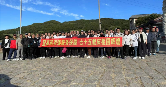 为庆祝新中国成立75周年,充分营造后勤职工热爱祖国、赞颂祖国的浓厚氛围,进一步凝聚后勤职工的工作热情,展现后勤职工奋力争先、勇攀高峰的精神面貌。9月21日,后勤工会组织职工开展了“登高远望强服务保障,七十五载庆祖国辉煌”主题活动。此次活动由后勤党员及工会会员共六十余人参加。