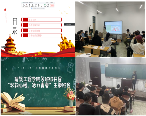 建筑工程学院各班级心理委员自10月8日—14日组织各班级同学开展了心理主题班会活动。各年级通过线上线下相结合的形式,进一步普及心理健康与精神卫生知识,提升学生的心理适应能力和心理素质。根据班级实际情况,选取不同的心理健康教育话题展开讨论,帮助同学们学习掌握科学的心理调适方法,排解不良情绪,主题活动不仅让同学们学习到了新的沟通技巧,还加深了彼此之间的了解和信任,有效提升了班级的凝聚力。