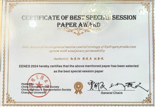 会议闭幕式上,长安大学能源与电气工程学院院长陈昊教授介绍了论文收稿、审稿及高质量论文的遴选情况,随后公布了20位高质量专题论文以及15位高质量大会论文入选名单,并为入围的作者颁发证书。我校电气学院副院长吕艳玲指导学生发表的论文获得大会最佳论文奖,孙东阳副教授指导学生发表论文获得专题优秀论文奖。