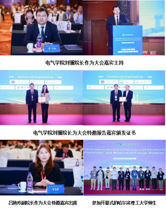 大会会议由哈尔滨理工大学电气学院院长刘骥教授与西安交通大学电气工程学院副院长杨飞教授主持。特邀了6个主旨报告,中国电工技术学会常务理事、会士、中国电力科学研究院有限公司总经理、院长高克利教授,中国电工技术学会常务理事、华北电力大学党委常委、副校长毕天姝教授,中国电工技术学会学会理事、会士、比亚迪首席科学家廉玉波总工程师,中国电工技术学会副理事长、北京交通大学贾利民教授,长安大学能源与电气工程学院院长陈昊教授,IEEE电力电子学会前主席,丹麦科学院院士、丹麦奥尔堡大学Frede Blaabjerg教授。电气学院副院长吕艳玲副院长作为特邀嘉宾出席大会开幕式。
