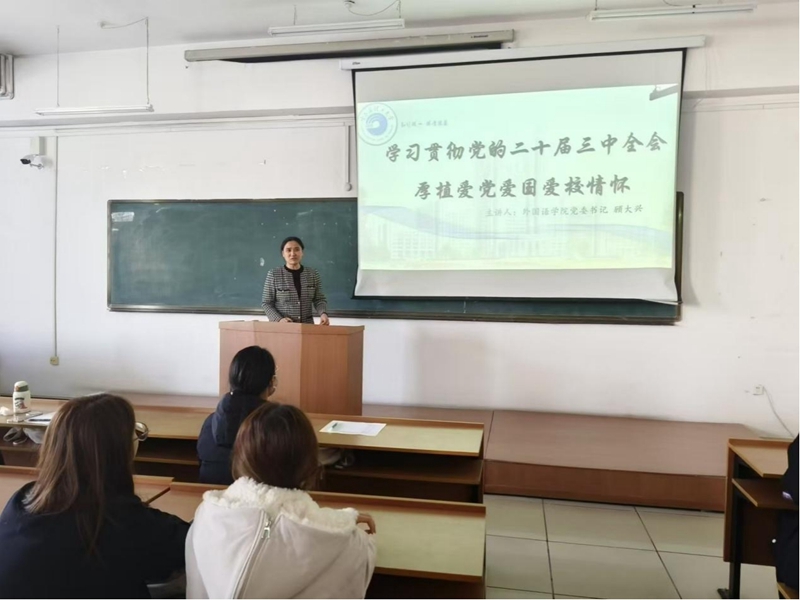 外国语学院党委书记顾大兴为培训班学员讲授“党的二十届三中全会·厚植爱校情怀”首场专题党课。