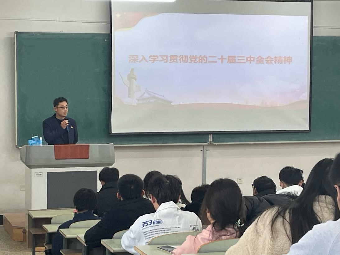 学院党委副书记张宏磊围绕党的二十届三中全会精神,带领大家深入学习习近平总书记关于全面深化改革的一系列新思想、新观点、新论断;深刻认识党的二十大以来党和国家事业取得的重大成就,引导全体学员增强对党的认同感和归属感。