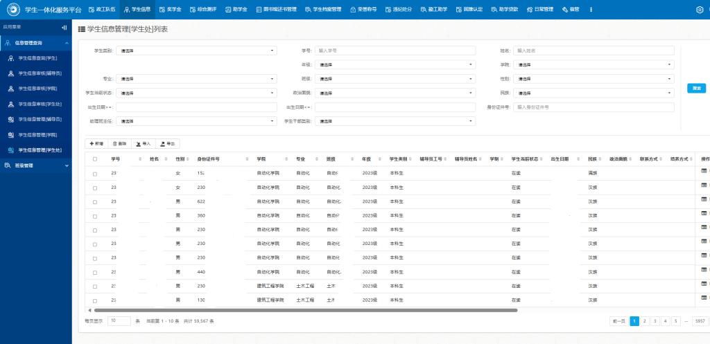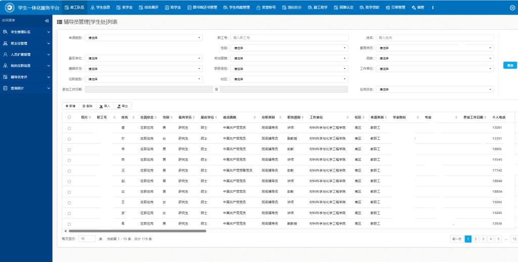 学生一体化管理与服务平台页面截图
