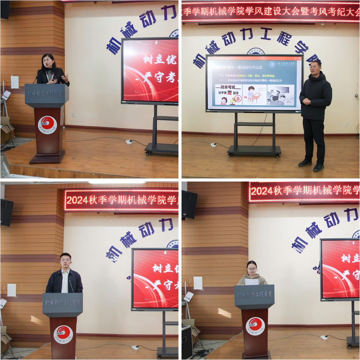 姜金刚首先说明了新一轮本科教育教学评估对于学校和学院发展的重要性,同时强调了在本轮审核评估中学生应该做什么、如何做,同时针对目前的部分学生存在学习目的不明确、态度不端正、自律能力不强,出现考试作弊等严重问题,主要解读了哈尔滨理工大学学生考试违规行为认定及处理办法,明确了考试作弊行为的严重后果。强调了诚信考试对于学生个人成长及学院教育质量提升的重要性,并且指出考风考纪是学风建设的重要抓手,良好的学风是学院培养高素质人才的基础。