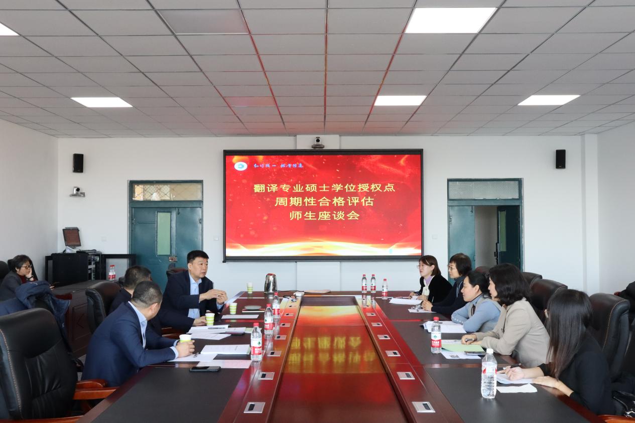 专家组认真听取了副院长杨蕊及翻硕教育中心副主任张春烨关于学位授权点总体情况的工作汇报,审阅了自我评估总结报告及相关材料,与教师和管理人员、学生代表分别开展了座谈,充分肯定了我校外国语言文学一级学科硕士学位授权点及翻译硕士专业学位授权点在人才培养、育人成效、教学特色及科研成果等方面取得的显著成绩,一致同意通过周期性合格评估。