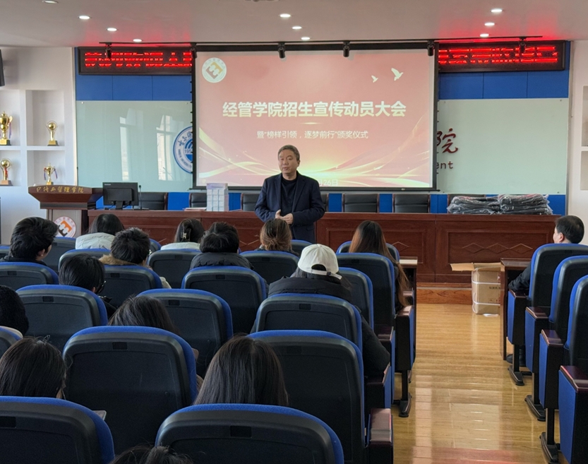 12月26日,经济与管理学院在南区会议室举行招生宣传志愿者动员大会。启动仪式上,副院长姚锋敏对参与的志愿者同学发表了热情洋溢的讲话。他指出,学院一贯重视本科生生源质量提升工作,通过顶层设计,群策群力,抢先抓早,全员参与,2024级新生的一志愿报考率、报到率、录取学生分数位次提升明显。同时对志愿者们寄予厚望,希望他们能够充分发挥自己的热情和才能,为学院的招生宣传工作贡献力量。