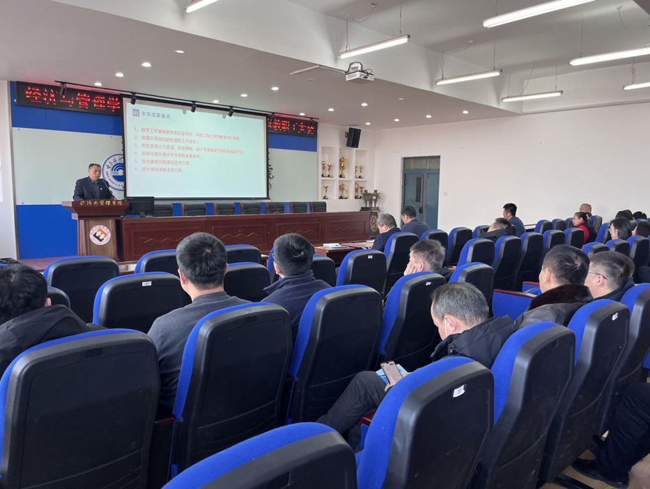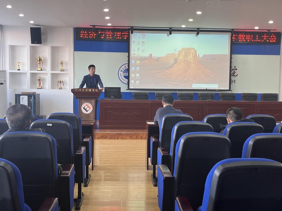 学院党委书记周长群在总结时指出,在全体教师的共同努力下,学院各项工作取得了突出成效,夯实了学院高质量发展的基础。他向与会教师传达了全校干部及骨干教师大会和本科教育教学预评估专家组反馈意见交流会会议精神,并从提高站位,推动党建与学院重点工作深度融合;深化改革,以新发展理念推动学院高质量发展;防字当先,落实落细各项安全保障工作三个方面对近期工作进行了部署。他强调,实现学院高质量内涵式发展,每一位经管人都是主人,都应该成为奋斗者、实干家、贡献者。希望全体教师坚持目标导向和问题导向,对标学科建设的目标要求进一步发力,与学院携手并肩、攻坚克难,以优异的成绩助力学院各项工作再创佳绩。