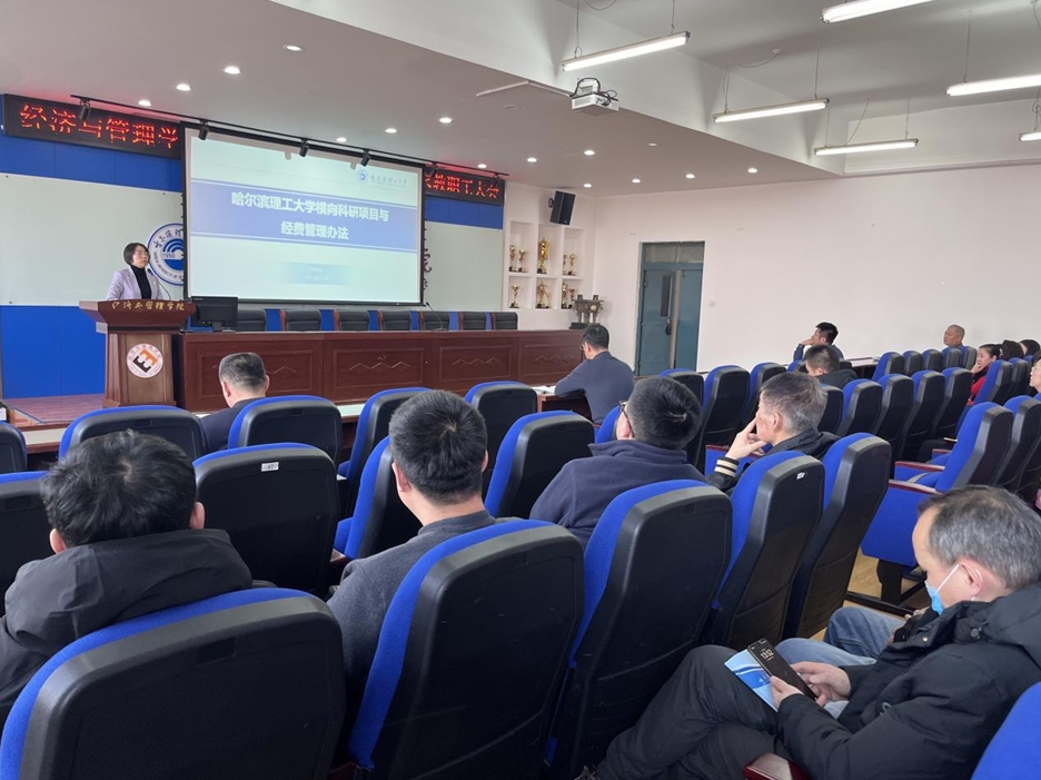 副院长王莉静在发言中对学院的科研工作进行了总结和展望。她表示,学院在科研方面取得了丰硕成果,教师们在科研领域不断探索创新,学院科研团队在各类项目上取得突出成绩。她强调,科研工作对学院的发展至关重要,学院将继续加大科研投入,为教师营造更好的科研条件和学术文化氛围。对标第六轮学科评估指标,加快短板指标的建设和产出,力争标志性成果的突破。认真总结“十四五”期间的工作成绩和不足,结合学院实际和远景规划高质量编制学院“十五五”规划。另外,她还对学校横向科研项目与经费管理办法进行了详细解读。