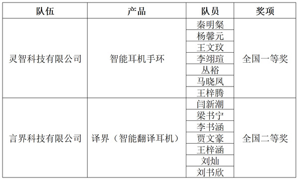 “灵智科技有限公司”和“言界科技有限公司”两组参赛队伍在总决赛中分别荣获国家一等奖和二等奖