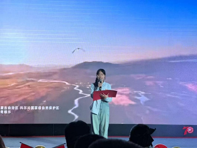 第二组是由刘奕帆、皇甫骞同学为我们带来的朗诵《我和我的祖国》。朗诵者用饱满的情感,倾诉着对祖国的深厚感情,让爱国情怀在字里行间涌动,深深叩击了听众的心弦。