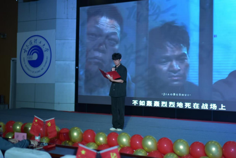最后一组由余彬同学为大家带来朗诵《青春向党》,从百年前觉醒青年的呐喊,到今天青年的奋斗脚步,赤诚永远是青年最鲜明的底色,朗诵以声为桥,让每位观众都感受到党旗下青年力量的传承与共鸣。